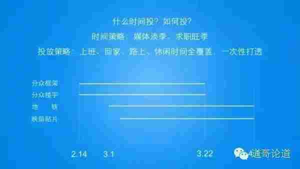 首先,是选择与其目标用户群体具有高度重合度的媒体渠道,脉脉定位职场社交,其面对职场用户与分众楼宇,特别是CBD核心区楼宇渠道的契合度十分高,并且职场群体是电影消费的主体受众,在院线中的电影映前广告投放选择都是基于目标用户群体的吻合,而在另一个聚集其目标受众群体的场景,地铁车厢内,电视以及平面都是其必选的对象。
