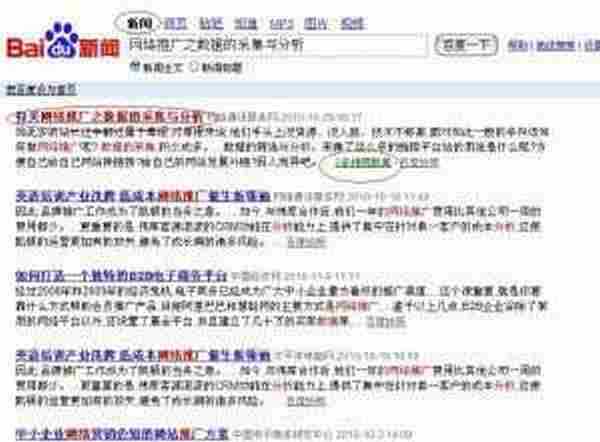 百度新闻种子站的收集(案例讲解)。在这里就谈谈百度新闻种子站的一些见解。何谓百度新闻种子站,可以理解成在百度新闻搜索里搜索关键字得到的网站。百度新闻里搜索到的网站与百度网页搜索搜到的网站是不同的,前者为人工干预审核的,后者是蜘蛛程序读取的;既然是新闻种子站,那更新频率肯定比百度搜索的大很多,具有新闻的及时特性。下图为《网络推广之数据的采集与分析》,是我之前写的文章,也被两个百度新闻种子站收录。